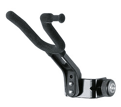 "Egal ob Konzertsaal, Musikschule, oder für zu Hause: mit dem neuen König & Meyer Violinenhalter für Stative haben Sie Ihr Instrument immer griffbereit. Mittels Klemmelement mit oberflächenschonender Gummieinlage kann der Halter an alle zylindrischen Rohre bis zu einem Durchmesser von 30 mm montiert werden. Die Violine wird am gewölbten Ende des Wirbelkastens aufgenommen, dadurch wird das unbeabsichtigte Verstellen der Wirbel verhindert. Durch die tiefe Form des Halters ist ein Herausdrehen oder Fallen des Instrumentes praktisch ausgeschlossen. Der integrierte Bogenhalter komplettiert den perfekten Einsatz der flexiblen Halterung. Der strapazierfähige Flocküberzug und der zusätzliche Klettbandschutz schonen die Violine vor dem Verkratzen und vor dem Anschlagen am Rohr. Gewicht: 0,115 kg.