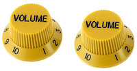 Potentiometerknöpfe z.​B. für Stratocaster® Farbe: yellow Aufdruck: Volume Skala: 1-​10 Material: Plastik Zum Aufdrücken auf USA Split Shaft Potentiometer mit Riffelachse 2 Stück …