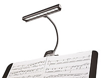 Professionelle Orchesterleuchte mit Batterien und Netzbteil. Neun LEDs sorgen für ein gleichmäßiges und kontrastreiches Licht. Der flexible Schwanenhals ermöglicht individuelle Einstellungen. Durch einen Drucktaster können zwei Helligkeitsstufen gewählt werden. Der Lichtkegel wird durch einen Blendschutz auf das Notenblatt begrenzt. Das komplette Set umfasst 3 AA 1,5 V Batterien, ein Netzteil mit 3 m Kabel sowie eine praktische robuste Tragetasche.